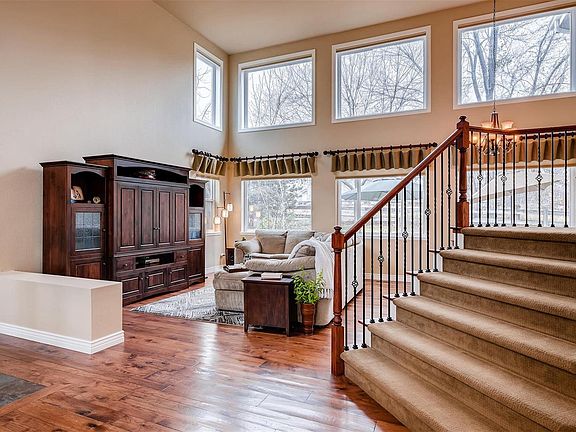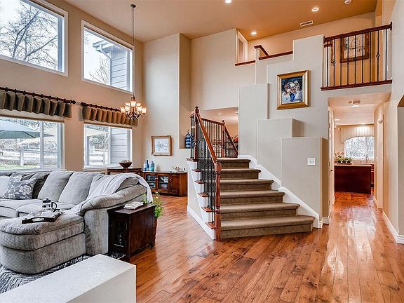 Located in a quiet neighborhood, yet with convenient access to two major highways, shopping, schools, parks and recreation facilities, you can walk out your back door onto the open-space trail system and enjoy a glorious view of the Rocky Mountains. The home has numerous upgrades throughout and has been impeccably maintained. Instant curb appeal, professional landscaping, vaulted ceilings, large picture windows, reclaimed hardwood floors and the stone-scaped outdoor patio space, are only a few of this home's exquisite features. A focal point of the main level is a dual staircase with a beautiful custom wood and iron railing that sets the standard of quality for the home. The updated kitchen boasts maple cabinets, quartz countertops, travertine marble backsplash, newer stainless steel appliances, and much more. The master suite has its own private deck and a 5-piece sunken bath. The loft and the fully finished basement offer even more comfort and living space to the home.