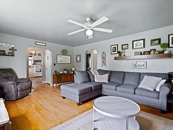 Amazing property with a HUGE yard, just minutes from town! Inside this home are stunning hardwood floors throughout the spacious living room. Just off the living room is the eat-in kitchen that offers LOTS of cabinets for storage. The hallway and bedrooms all feature hardwood floors as well. At the end of the hallway is a centrally located full bathroom. Off the kitchen is an enclosed breezeway that leads to the 1-car attached garage. This home also features a finished basement that has been professionally waterproofed. The basement has a spacious family room, an additional room that could be a 4th bedroom with the addition of an egress window and an additional bonus room for storage. Some recent updates all in 2019 include a new roof, septic system, all new siding and new french doors/windows in the breezeway.