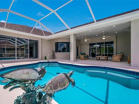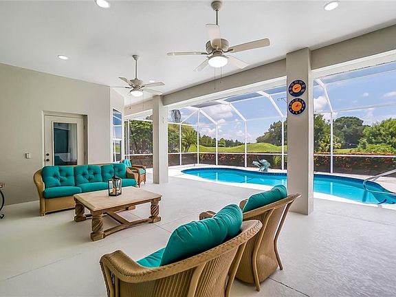 Welcome to this Todd Johnston custom built home with expansive golf views overlooking the 11th green. Open floor plan with 11 ft. ceilings and spacious rooms and ceramic wood plank tile in all main living areas. The formal living room and family room boast a wall of sliding glass doors that open to the screened lanai area with an oversized seating area under roof bringing the outdoors inside. The large family room is adjacent to the kitchen that creates a marvelous gathering space for entertaining family and friends. The kitchen features all new Kitchenaid stainless steel appliances, new wood cabinets with pull-out drawers and 10 ft quartz center island. Spacious master suite with sitting area, his and her large walk-in closet, private bath with garden tub, separate walk-in shower and double vanities. 2018 new roof with transferable warranty, A/c's 2010, 2014,2015. Huge extra deep 3 car garage. This house is move in ready and available for a quick closing. River Club is a deed restricted golfing community with No required golf membership, No CDD fees and low HOA fees. Excellent schools and close to LWR amenities, I75 and a short distance to beaches.