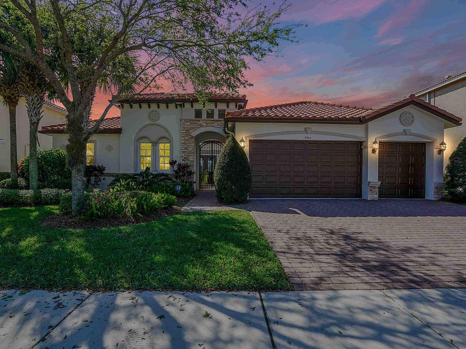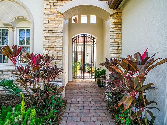 Welcome to Isola Bella Estates, neighborhood includes a 24/7 Gate Guard on Duty! This Home sits on a Natural Wildlife Estuary with a screened- in, heated, salt water pool! Open floor plan with 4 bedrooms, 3 full baths, includes a Second Master Suite (or ''Mother-in-law Suite'') with a living/crafting area, also includes an outside or inside entrances. Dual closets in master with built-ins. 20x20 Diamond style porcelain tile and hardwood throughout the home. Open layout kitchen with wood cabinets, granite, and stainless steel appliances. Custom coffered ceilings in dining room and library/office. Library features built in bookshelves and cabinets. Secluded courtyard entrance. 3 car garage. Impact glass throughout. Exterior painted Dec.2022. Pool pump and heater replaced last year.