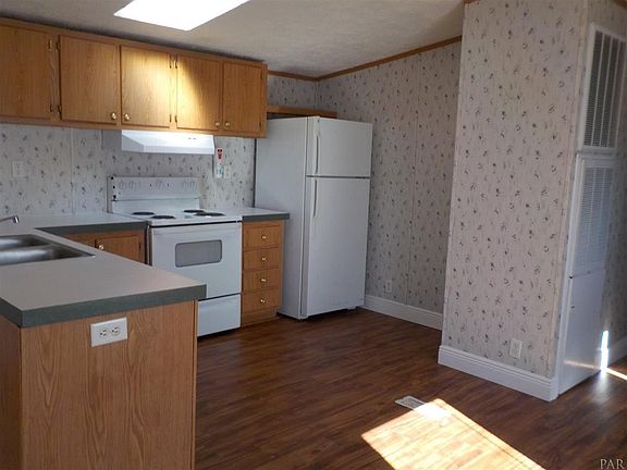 Mobile home on 1 acre. 3 bedroom 2 bath. Ope living area to eat-in kitchen. Front porch.