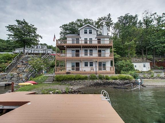 Beautiful well-built custom home on Keuka Lake's east side, 3 miles from Hammondsport. You'll find 3 full levels of spacious living. As you walk in the front door, a lovely sitting room awaits with built in book shelves, a master suite with large walk in closet & private bath in addition to a bonus space that has a spiral staircase to a loft overlooking the lake views. On the mid-level you'll find another bedroom, full bath, large open living-dining-kitchen area, overlooking the waterfront. The bottom floor is a completely separate apartment unit with bedroom, bathroom, kitchen and living area. All 3 floors have lovely outside decks overlooking the lake to take full advantage of the calming sunsets. Enjoy the new brick patio, the natural beach or sun bathe on the oversized permanent dock.
