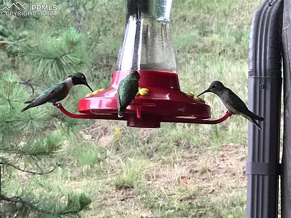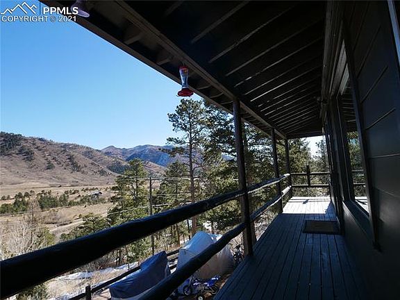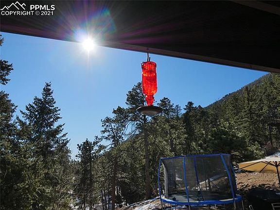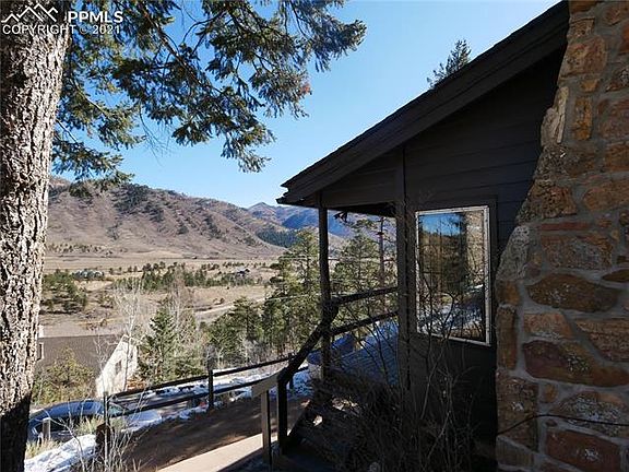 Gateway to the mountains with this hiker's paradise Rocky Mountain Dream Home! Vaulted ceilings etched with log beams and lots of wood create a spacious feeling and desirable ambiance. Nestled in the trees with mountain views makes this lovely home one of a kind! Relax around a cozy stone fireplace while enjoying the sunrise over the mountains through the picture window! Wood floors, new living room flooring, knotty pine tongue and groove paneling create a natural, peaceful feeling! Every square inch is well designed for maximum utility without sacrificing character. Built-in bookcase in the living room. Under the stairs storage for all your toys. Ceiling fans keep the air moving. Newer washer, dryer, and mechanicals in the basement as well as additional storage. A relatively newer septic system has been recently pumped. New radon system. Natural Gas. Colorado Springs Utility water supply. Huge 27 by 12 patio for enjoying the great outdoors! A utility shed is included. Be amazed at the hummingbirds, deer, and wildlife that inhabit the surrounding area. There is a public parking space at the south end of the property. Your gateway to the great outdoors begins here: Catamount Trail, Catamount Reservoir, The Crags, Pikes Peak, Green Mountain Falls with its quaint restaurants and lake! Easy access to Woodland Park with a two-hour trip to ski resorts. Don't miss out on the best of Colorado at an affordable price!