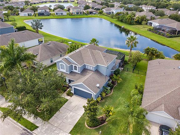 Welcome Home to this 4 Bedroom 3 1/2 Bathroom with Den pool home! This well maintained home has it all! As you approach the home you will notice the curb appeal to this Harrison Ranch home. Newly painted exterior, lush landscaping and a welcoming covered front porch with room for seating. The 8' front door with transom glass opens up to the foyer. The high ceilings and new vinyl flooring draws your eyes to the rear of the home overlooking the pool and the pond. A large Family room along with a powder room are located off of the Dining area and the kitchen. This home offers plenty of natural light with an abundance of windows. The kitchen offers stainless steel appliances, granite countertop, Island with seating and a large pantry. There is plenty of room for 2 seating areas if needed! The den is also located on the main level. On the second floor you will find the large master bedroom with a spacious en-suite. Double vanities, soaker tub, separate shower and water closet make up this master bath. 2 additional bedrooms and 1 bathroom along with a Jr-suite with its own ensuite and a laundry room will provide plenty of room for the family along with convenience. The outdoor area of this home is what Florida living is all about. The home has it all! Pond view, fenced yard, pool, spa and fire pit all located on the screened lanai. Harrison Ranch offers a clubhouse, Olympic sized pool, tennis courts, soccer fields, play ground, activity director and so much more! This is the place to be. *** Multiple offer situation, Highest and best offer due on 5/17/2020 no later then 6pm***
