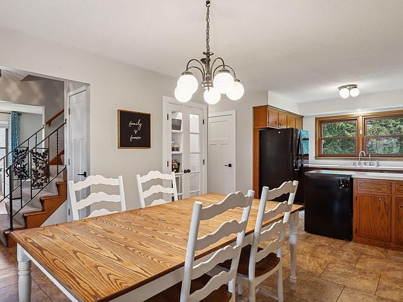 Charming and inviting 4 bedroom up 2 story with new white doors and new trim! The "Country Style" kitchen is open to the dining area with a fireplace and step in pantry. Sun bounces off the refinished hardwood floors in the living room. Both baths beautifully updated along with lots of other improvements. The finished LL family room has an egress window and plenty of storage. Other recent improvements include, Roof, Furnace, AC, Humidifier, Water Osmosis System, Water heater, dishwasher, new carpet, sewer line passed inspection and new fence. The home is set back on a .34 acre lot with wooded privacy in back, a cement driveway and a custom deck out back.