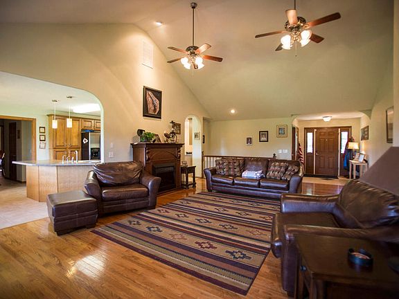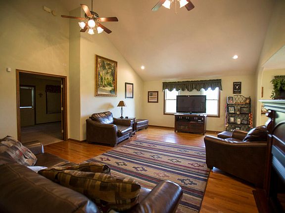 Close-in privacy for this walkout basement home on a beautiful 5 acres in Republic. Large room sizes throughout including a spacious Living Room, Formal Dining with hardwoods and a spacious Kitchen/Dining combination with great cabinet space. Split Bedroom design has two main level Bedrooms with an open Master Bed/Bath. Finished basement area has a large Family Room with radiant heated, tiled floors, a third Bedroom Suite with Full Bath plus a storm safe room or additional storage. A really nice RV Garage (40'x24') with double overhead doors.