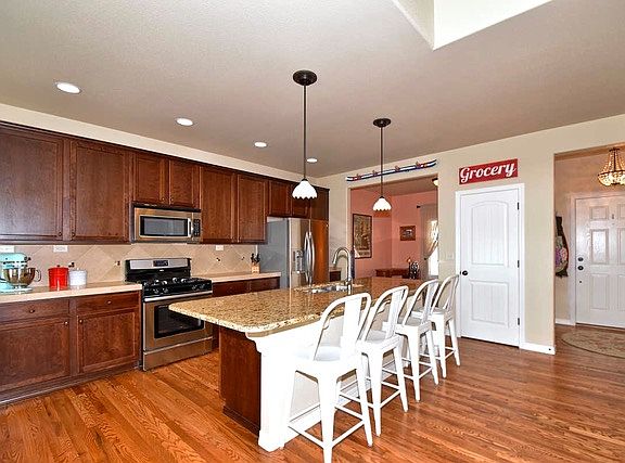 Fantastic 2-story Cordera beauty on a culdesac. Huge lot at almost 10,000 sq ft. Open floor plan w/ hardwoods, main level office, and bonus room off kitchen. Vaulted two story ceilings w/ loads of natural light. Kitchen features granite counter tops, tile backsplash, stainless steel appliances, and dark maple cabinets w/ moulding and hardware. Large master suite w/ upgraded 5-piece bath featuring raised vanity, custom framed mirror, & tile flooring. Newly landscaped yard w/ huge concrete patio. See Supplemental... Dual zone HVAC w/ Central A/C on upper level. Walk to award winning Chinook Trail Elementary School. Construction has begun on new Chinook Trail Middle School as well. Walk to clubhouse w/ exercise room, heated pool, splash area for the kids, and grand lawn for concerts and activities. Phenomenal family community.