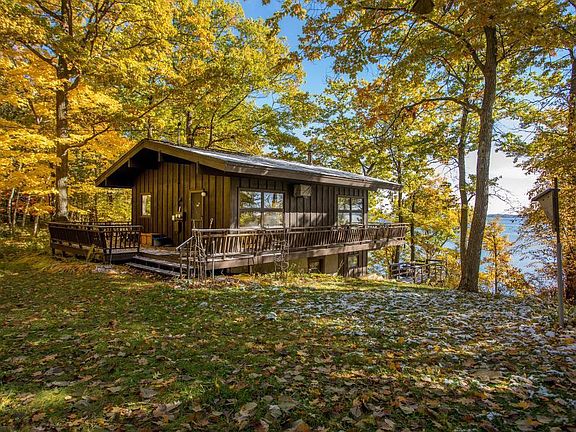 Over 200' of hard sand Gull Lake Shoreline on 2.9 acres makes this perfect for your private up north getaway. Walk to over 350 acres of State Land! A chalet style cabin with vaulted tongue and groove main level, wood burning stove, great views of the lake. Enjoy the great outdoors , gazebo, wrap around deck, lower level walkout and nice hard bottom lake shore. Walk to restaurant, and a short easy drive to championship golf. There is potential to split the lot in the future. Beautiful drive in with tall pine trees and rolling terrain..Don't miss out on this lake shore property! Fast Occupancy!