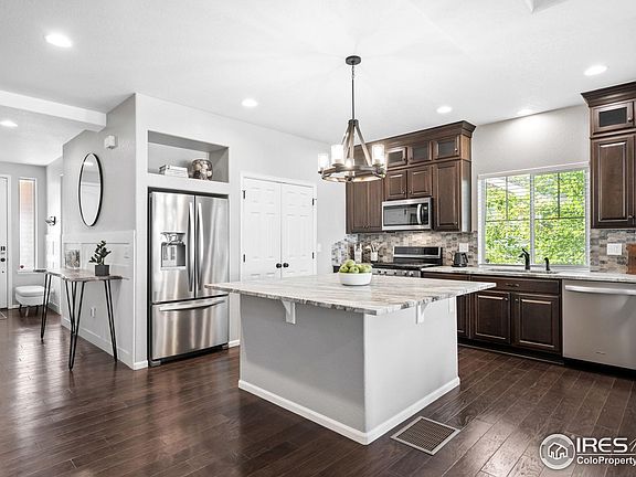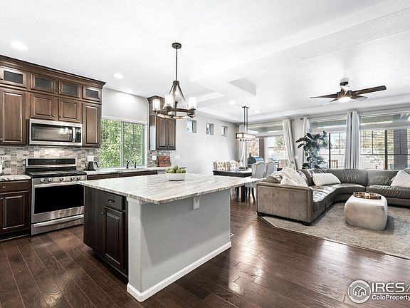 Beautifully upgraded home with the look and feel of a model! The seller spared no expense on custom builder upgrades, creating a truly move-in-ready home. Enjoy honed leather granite slab counters, a large center island, Whirlpool stainless steel appliances, accent walls, ceiling height custom cabinets, and upgraded lighting throughout. The open and spacious floor plan flows seamlessly to a walkout expanded Trex deck, gazebo, and low-maintenance artificial turf with a putting green and built-in planters-perfect for relaxing or entertaining. Located in the desirable Erie Highlands community, residents enjoy expansive trails, parks, and a community pool, all with incredible views throughout the neighborhood. The finished basement offers even more living space, featuring an additional bedroom, wet bar, beverage refrigerator, and an included pool table. Upstairs, a loft provides flexible space for work or play. An oversized three-car garage with high doors adds convenience and storage. With the neighborhood pool and park just around the corner, this beautiful home is ideal for entertaining friends and family!