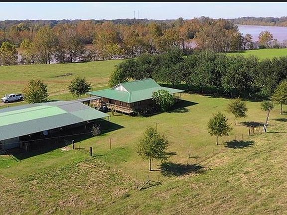 WOW Check out this beautiful place!!!!!!! This home sits on over 45 acres of land almost 2,000 ft of water front on the Red River. Home has 2 beds and 2 baths with a open floor plan. Some features of this property include a 8 foot wrap around porch, formica countertops, electric air cleaning system with AC unit, 70x80 covered metal roof ( Pavilion ) which has a tool shed/shop that has electricity and plumbing, wood burning fireplace in home and a hog hanging fireplace under metal roof. Other features include Pine and Cottonwood walls with Pine siding, and heat strips on PVC water pipes to prevent freezing. This property is definitely a must see and is perfect for a getaway and family gatherings.