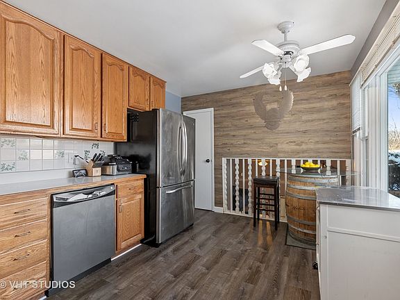 Step inside off your front porch into a large living area with beautiful new and newer luxury vinyl floors. Living room open to dining room which leads to a great 4 season room with ceiling fan and fireplace. The kitchen offers plenty of cabinets, counter space and stainless steel appliances. The lower level has a huge family room which makes this floor plan perfect for entertaining. A full bath, bedroom and large laundry room with storage completes the lower lever which also offers a large crawl space for extra storage. Newly finished wood stairs lead you back up to the bedroom area and another full bath. The backyard is fenced and the large 2 car garage has plenty of room for your cars and additional storage too.