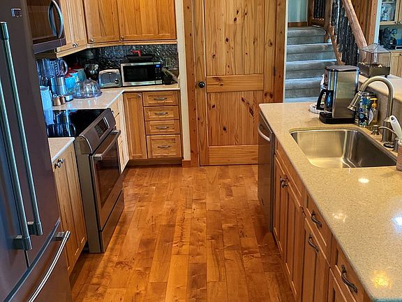 Beautiful Rustic Elegance! Year round view and private with approx 3000 ft elevation. Quartz counter tops in Kitchen,Upgraded appliances, with lots of cabinet space. Stacked stone gas fireplace. Full gable windowed wall in LR, hard wood floors, tile bathrooms, main level living.