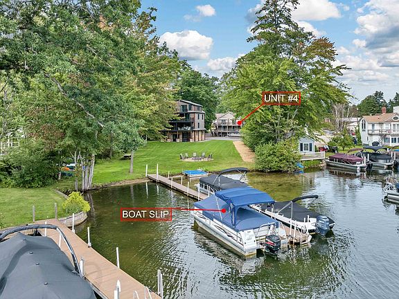 Lake Winnisquam condo with deeded boat slip! This adorable 1- bedroom condo is move-in ready for convenient lakeside living. Enjoy lovely lake views comfortably from the front deck. Steps away from the unit, is the walk-in, sandy bottom beach on Winnisquam. The deeded boat slip is located at the end of the dock for ease of access (The seller currently has a 21ft boat, but there is room for a larger boat). A large, flat, nicely-landscaped association common area allows for yard games and entertaining family and friends. There is a large fire pit close to the waters edge. Store kayaks, canoes and other water toys on the association racks. The interior of the condo is bright and airy, and has been lovingly maintained by the current owners for the past 13 years. The location on the condo, by both land and water is extremely convenient, yet once inside the condo association, it feels very private and secluded. Shady Grove Association is comprised of only six total units, with a fee of only $120/month. No current rental restrictions in the association. Make this your permanent or year-round lake home!