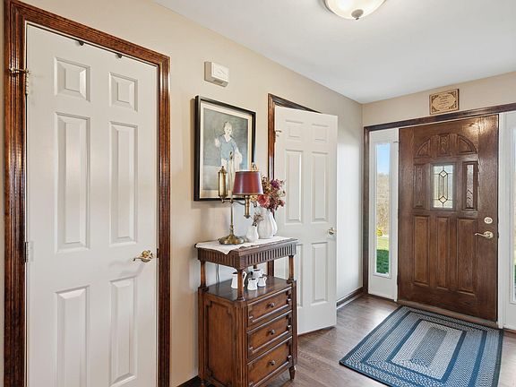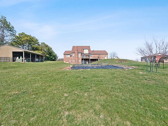 Looking for a farm property? This Stunningly spacious 4 bedroom, 3 1/2 bath, all brick home, with an office, that could be a 5th bedroom, is all on 6.236 acres of farm paradise! This home has an open floor plan, a gourmet kitchen with granite countertops, a large custom island, beautiful hardwood floors, a 6 burner gas stove that has 2 ovens, and a hood with warming lights. The great room has a beautiful floor to ceiling, all stone, wood burning fireplace with blower, and a soaring cathedral ceiling with recessed lighting. Primary bedroom has ensuite bath, full walk out basement with full bath, a deck, and covered patio, 3 car garage with high clearance plus additional 4 car detached garage with lean-to, a 3 stall barn, greenhouse, chicken coop, garden shed, 3 fenced pastures with goat sheds, a gorgeous pond fully stocked with fish, multiple fruit trees including peach, cherry, apple, plum, and blueberries, blackberries, and elderberries. This is a nature lovers paradise! Cistern with a filter system coming into the home that is self cleaning, it backwashes itself! City water is also available at the street.