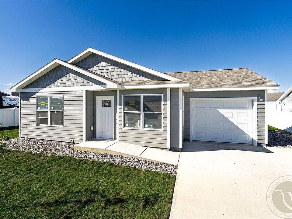 New home fully finished with fence & landscaping! Step into this one level home by 4MT Homes. Enter into the living room, separate from the kitchen and dining. This plan is perfect for those who like room differentiation. Open kitchen and dining room with large sliding patio door to the spacious back yard. Primary suite with walk-in closet and bath {double sinks & walk-in shower}. Recessed lighting, hall storage, mudroom with cupboards, additional parking pad, and more! Hardi siding. Completion in October 2025. A must see! Interior photos of similar home, colors differ. Contact agent for fridge options.