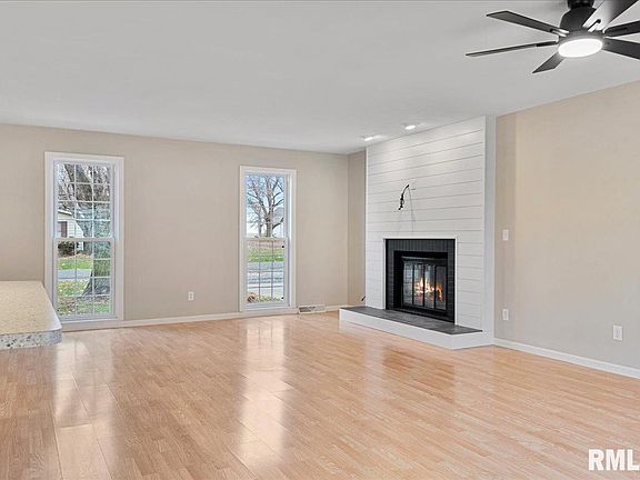 This fabulous all brick ranch has ample living space, fantastic updates & a perfect corner lot location on the outskirts of West Springfield. Striking curb appeal upon arrival is found in a freshly painted exterior & extra large 2c attached garage. Inside the huge living room, dining & kitchen are in a wide open concept where a freshly tiled fireplace & shiplap are the focal point. The natural light, bright white cabinetry & large kitchen island all combine to create an ideal space for hosting guests. An abundance of storage & closets throughout include the laundry room which doubles as mudroom entry from garage. You'll love the master suite & it's private, tiled bathroom while bedrooms 2 & 3 share the second full bathroom (also freshly updated).This gem of a home also has that generous backyard to enjoy with patio access from the dining space & delightful country views. Fresh fixtures, paint, flooring & more are featured in this prime location & superb setting. It's a must see for the highly desired Pleasant Plains Schools, endless improvements & adorable backyard!