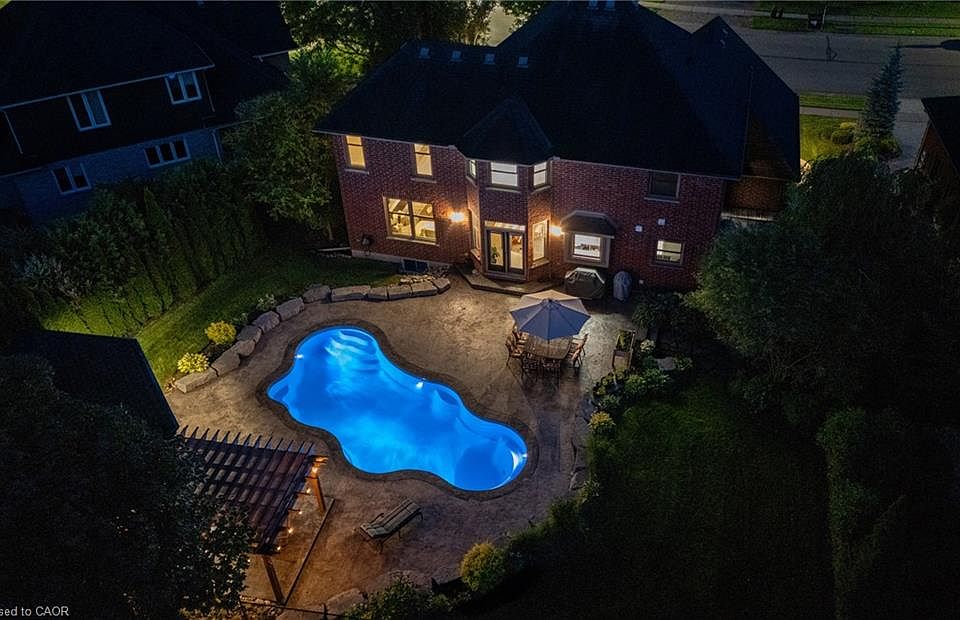 Absolutely stunning brick and stucco 2-storey home featuring 4+1 bedrooms located on an impressive premium lot backing directly onto green space providing incredible privacy. This impeccably maintained and updated property offers almost 3,500 sq ft of total finished luxury living including a finished basement with separate walk-down access from the garage. The main floor offers a bright, spacious layout with large principal rooms, a beautifully updated kitchen with brand-new upgrades (2025), a great room with a gas fireplace, a fantastic breakfast nook overlooking the pool, a den / office, and a large dining room for family dinners. The upper level has all new carpeting with 4 spacious bedrooms including a primary with 5 pc ensuite and walk in closet. The lower level is a great place to relax with the family in the large rec-room with a gas fireplace and space to hold game nights or a great workout space, also a 5th bedroom, bathroom and plenty of storage space. A new furnace and heat pump / HVAC system (2024) ensure maintenance free comfort. The attached 2 car garage has new garage doors, is insulated and has a gas heater. The outdoor space is a masterpiece. Step outside to your backyard haven featuring a fibreglass, gas-heated, saltwater pool, a large 20x20 pool/storage shed, a fabulous concrete patio, an inground irrigation system creating one of the best lawns in all of Woodstock with outstanding landscaping. Backing onto greenspace is an added bonus with no rear neighbours with peace and quiet.