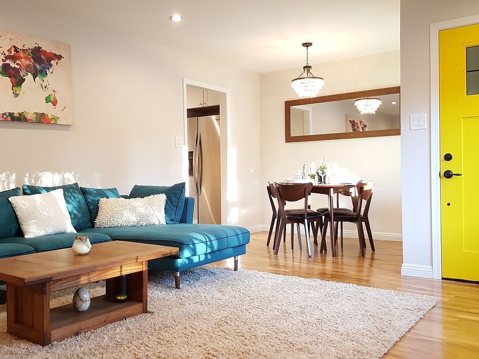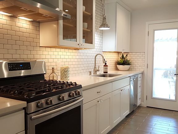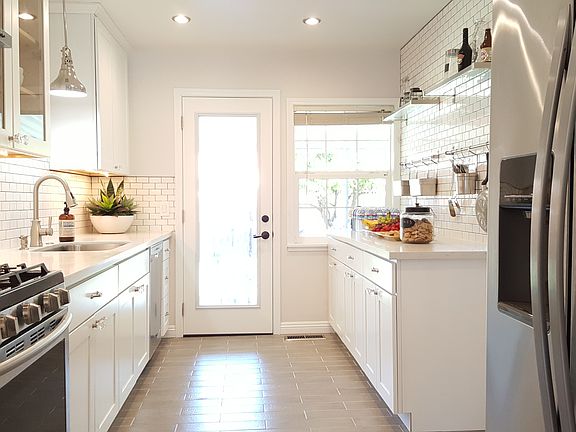 Exceptionally beautiful family home just steps from shopping & restaurants! Breathtaking gourmet kitchen w custom cabinetry, Quartz slab countertops, stainless appliances including gas range & refrigerator with water/ice dispenser. Open & airy floor plan with neutral hardwood floors, wood burning fireplace, dual-paned windows & central heat & air conditioning. Gorgeous bathroom features travertine tile flooring, tumbled tile in the shower/tub area, floating vanity & built-in glass storage shelving behind the door. Natural light abounds, and exquisite, high-end Walnut Creek Lighting Co light fixtures were recently installed throughout the home & illuminate it to perfection. Excellent flat backyard is ideal for entertaining & enjoying the outdoors...features covered patio, lawn & one of the most delicious mature navel orange trees you've experienced in your life! Attached 2 car garage with abundant storage space, washer/dryer included. Excellent commute location to 24 & I-680 freeway!