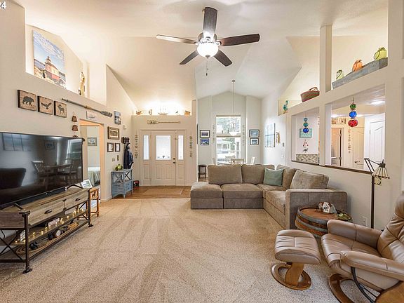 This STUNNING 3-bedroom, 2-bathroom custom home is located in a FANTASTIC neighborhood on a spacious corner lot. Meticulously maintained and recently renovated in 2020, this beauty radiates luxury and comfort. Boasting a single-level well thought-out floor plan with an attached 2-car garage, as you step inside you are greeted by an abundance of natural light, vaulted ceilings, picturesque fireplace, new flooring, new paint, a custom kitchen with granite countertops, stainless-steel appliances and wood cabinetry. The primary suite offers a spacious layout and an attached en-suite bathroom equipped with a walk-in shower, double-sink marble vanity and a generously sized walk-in closet. Outside is equally impressive featuring a newer roof, security system, manicured backyard with a new fence, RV parking and hookups, storage shed w/ electrical (potential to be an ADU with proper permits), new decks in the front and back and more. Located on a corner lot in one of Coos Bay sought after neighborhoods, this residence ensures a turnkey experience for its fortunate new owners. Don't miss the opportunity to call this meticulously maintained home yours, it is a must see to appreciate, pictures do not do it justice!