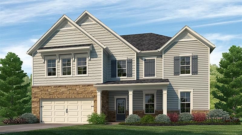 Located in Oakhurst Glen, a premier swim and tennis subdivision located in the growing city of Fairburn. Highly sought after, 5 bedroom/3 bath Jadyn floorplan home. Front flex room, perfect for formal dining or home office. Kitchen features exquisitely crafted cabinets with decorative crown molding and hardware, granite countertops, decorative subway tile backsplash, and stainless-steel appliances. Kitchen opens to dining area and large great room with corner fireplace. Guest bed with full bath on main. RevWood By Mohawk wood plank flooring throughout main level. Spacious upstairs loft. Primary suite with tiled shower, separate tub, and walk-in closet. Stock Photos- Not of actual home.