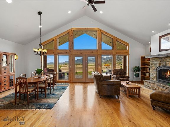 Welcome to this stunning custom-built home, perfectly perched on an elevated lot with breathtaking views in every direction. Imagine hosting gatherings in the expansive great room, where floor-to-ceiling windows showcase the majestic Bridger Mountains. The thoughtful floor plan offers main-level living at its finest, with a luxurious master suite, kitchen, laundry, and office space all conveniently located on the same floor.