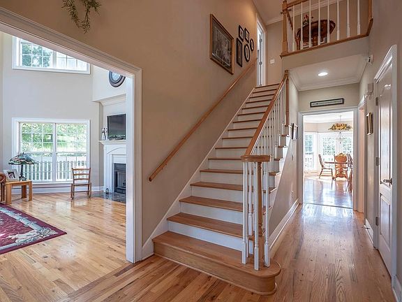 WOW. Experience true Country living in this custom built home on 8.58 acres and w/ 800+ SF of exterior wrap around deck,/porches, Hardwoods through-out, Soaring ceilings in the living room w/ FP, master on main, open Kitchen w/ island and built in appliances, large Mud/laundry room, Deck overlooks private backyard and pond. Don't miss this one!
