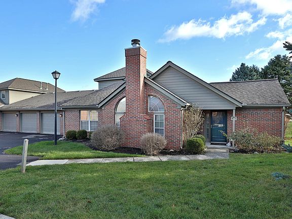 Welcome to this spacious 3 bedroom 3 full bathroom condo at The Village at Willow Brook. The first floor offers a nice kitchen with granite tops, dishwasher, range, microwave and refrigerator, eat bar and dining space, sliding door off dining space to private patio. Large living room with vaulted ceilings and gas fireplace. Primary suite on first floor with walk in closet and big full bath. 2nd bedroom and 2nd full bath off entry way with more great closet space. Up the stairs off the living room is your 3rd bedroom with another full bathroom along with great walk in closet. 2 car attached garage has a pulldown for attic storage, walks right in to first floor laundry space off kitchen. Convenient location, condo offers private pool and clubhouse, must see!