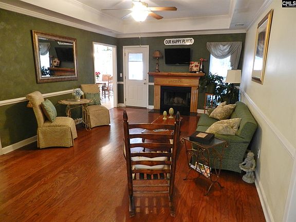 - Living Room: Fireplace, Floors-Hardwood, Ceilings-Tray, Molding, Ceiling Fan