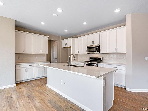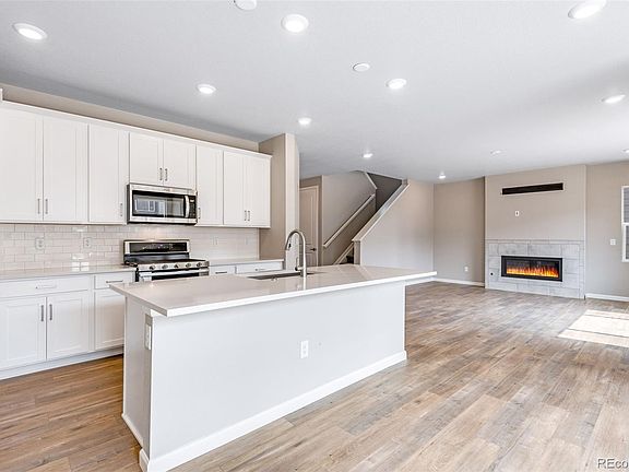Move-In Ready! This home features a Craftsman style exterior with a rear patio, main level study and large great room with a modern gas fireplaces, open kitchen and dining room. The selected interior finishes were inspired by a light, natural color palette including: white cabinets, quartz countertops in the kitchen, stainless steel appliances, granite countertops in the bathrooms and wide plank, natural wood color laminate flooring through out most of the main level. Located in the desirable Reunion neighborhood, with an in-community STEAD school, large rec center with outdoor pool, gymnasium, fitness center and multipurpose areas. Plus a network of trails, 150 acres of parks and a community coffee shop. In addition to top notch amenities, Reunion also hosts numerous community events through out the year for their residents.