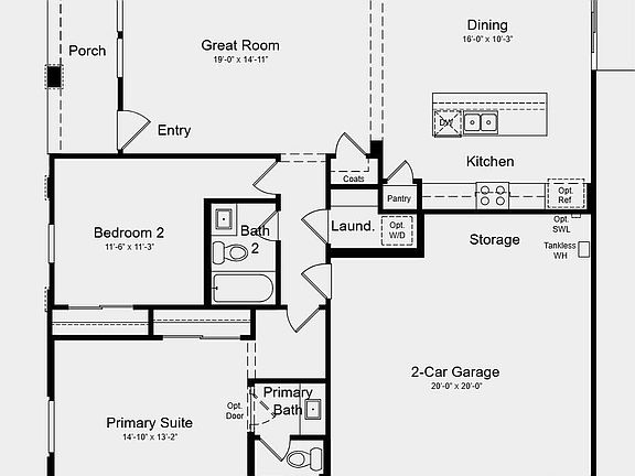 MLS# 6858716 New Construction ~ July Completion. Welcome home to the Plan CC-RM1 at Parkside—a thoughtfully designed single-story floor plan offering 1,272 sq. ft. of smart living space, 2 bedrooms, 2 bathrooms, and a 2-car garage. Step in from the front porch and enjoy a cozy great room that flows effortlessly into the dining area and a stylish kitchen, featuring 36'' upper cabinets, sleek nickel hardware, and faux wood window coverings. Upgraded light fixtures and added can lighting in the great room and primary bedroom elevate the home's ambiance. Down the hall, you'll find a full bath and secondary bedroom on one side, and the garage entry on the other. The private primary suite offers a peaceful retreat, complete with an en suite bath and walk-in closet.