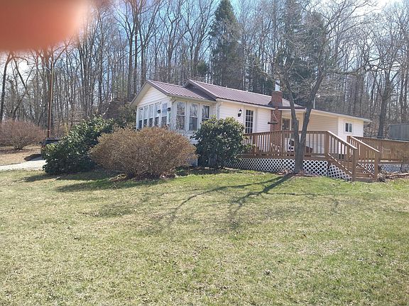 Stunning 1BR/1.5 car garage home on a serene country setting with 2 acres, city water & private sewer. Recently remodeled with new flooring/HVAC. Enjoy scenic views from the large deck and sunroom. Original preserved features add character. Fenced area with small barn. Perfect for those seeking a tranquil escape.