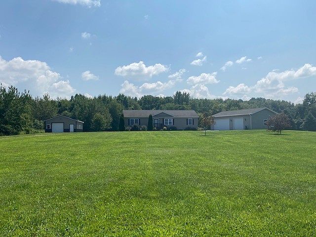 This home has everything you could want. Ranch style home boasts an open living area and sliding glass doors to the 16x22 deck from the dining room to expand your entertainment. It has 5 bedrooms and 3 full baths as well as a finished lower-level basement with outside entry. Two detached garages. Enjoy watching the wildlife in your large backyard. 1st floor laundry. A 24x40 heated detached garage was built in 2018. Fruit trees consist of peaches, pears and apples on the 7.88 acres. Enjoy the property with riding and walking trails throughout the wooded area. The lower-level family room has a Pellet stove to warm the cool chilly nights.