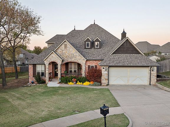 Coming Soon, No showings or offers until 11/14/2024! Stunning 2,806 square foot two-story home in a quiet Bixby neighborhood offers the perfect blend of style and functionality. Featuring 4 bedrooms and 3 full bathrooms, this home boasts a unique in-law suite - ideal for multi-generational living. Brand new roof and gutters in 2024 complements the gorgeous backyard with a resort-style salt water pool and hot tub, perfect for entertaining. The open concept interior showcases a gourmet kitchen with granite countertops, stainless steel appliances, and two sinks overlooking a spacious living room. Upstairs, a complete secondary living quarters provides incredible flexibility with a private bathroom and mini kitchen. Additional highlights include a private office, tall ceilings with beautiful molding, and a two-car garage featuring a storm shelter and extra work & storage space. Located in the exceptional Bixby school district, this wonderful home is move in ready!