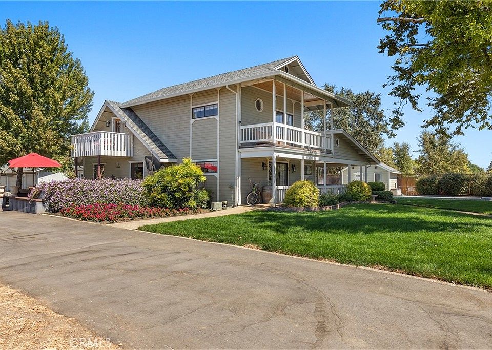 Welcome to Garden Creek Rd ! This amazing 4 bedroom, 3 bath home is approximately 2800 sqft and is situated on 5 level acres just outside of downtown Durham and only a few minutes away from Butte Creek Country Club and Hwy 99. There is a gorgeous kitchen with leathered granite countertops, custom island with a butcher block top, pot filler and newer GE appliances. The spacious dining area has plenty of storage for you to display your most precious collectables and still has room for all the kitchen gadgets too! The main suite is spacious and has 2 balconies with 2 different views of the property. There are also 4 closets so you can have all your things in one place, while the sweet reading nook adds to the privacy and charm of the 2nd floor. There are two full baths downstairs plus 3 bedrooms, 1 with a slider to the backyard. The bonus room has a concrete floor, custom walnut countertops, full size refrigerator and sink area to make entertaining a breeze. Did I mention the outdoor kitchen with a huge pergola and a patio big enough for a dance party? Need a metal shop that's 30x40 and 20' tall with 2 phase electric and a minisplit system to heat and cool it? How about a 5 car garage with 3 phase? How about an inground, gunite pool and poolhouse with a 1/2 bath? And there's more: this property is Certified Organic (CCOF) and at one time functioned as a boutique winery. There is an Ag well, a domestic well and the entire property runs off the owned solar ground array as well as panels on the shop. This property has it all and then some. It is ready for new owners so make the move. You will love it !