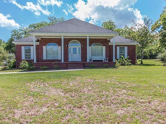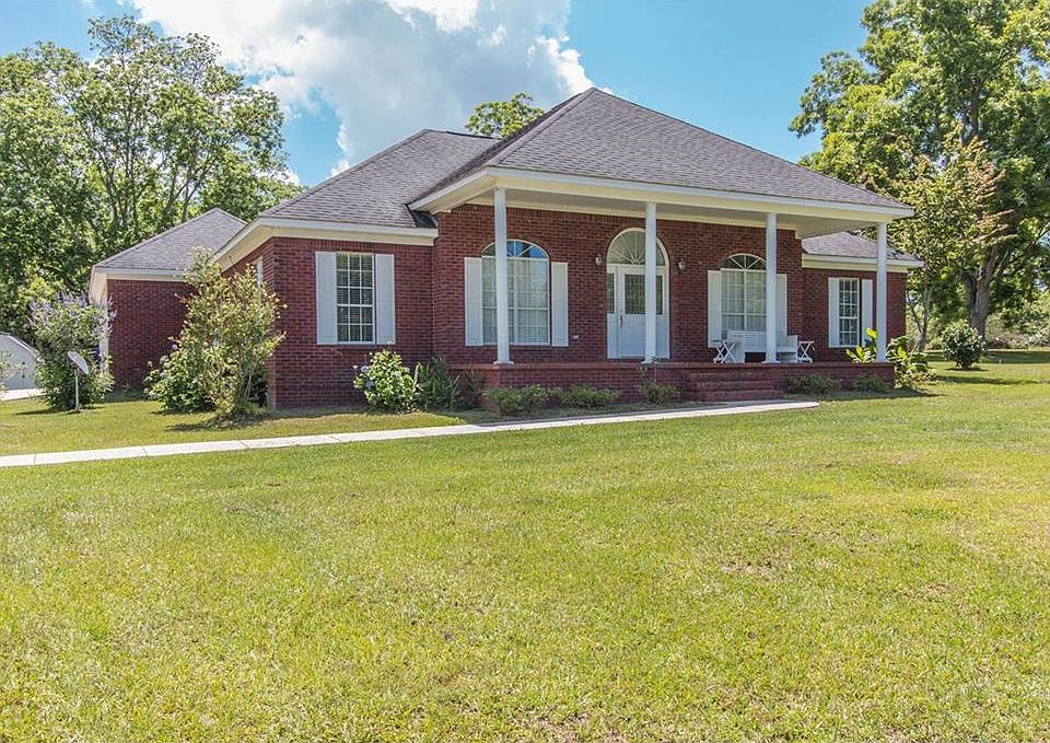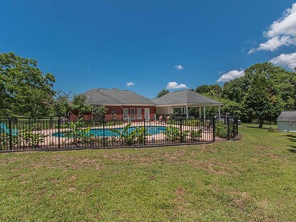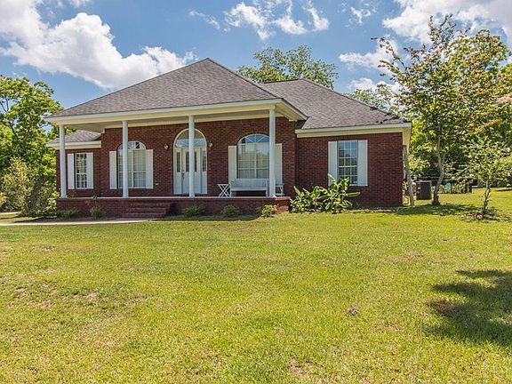 Peace & tranquility is what you will have with this Grand Bay Southern home! Nestled in the backside of the 5 acres you will find a beautiful custom built brick home. This homes large front porch allows you to hang out and enjoy your view from your rocking chair or swing, walk inside & you will be greeted by an open foyer leading to the formal dining room or large family room with a wood burning fireplace and recess ceilings. The kitchen has an island and breakfast room with split brick floors for you to enjoy your time in the kitchen. The bedrooms are off to the side of the home with wood floors throughout with the Master secluded in the back with recess ceilings and a huge master bath suite with a Jacuzzi tub, his and her sinks and closets and a separate shower. This home also has a large sun room with split brick floors that is enclosed and overlooks its custom saltwater swimming pool with a nice tanning ledge which is safely fenced in with wrought iron fencing. There is a lot of concrete areas for you to enjoy around the pool & a covered 3 car carport in the rear of the home as well.