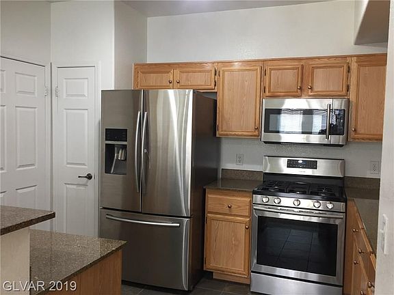 Conveniently located 1 bedroom condo in Chateau Nouveau complex off 215 and Flamingo next to lots of shopping. Features 2 car tandem garage, upstairs unit with large living room. Kitchen has granite counter tops, upgraded stainless steel appliances and separate laundry room. Community pool and spa, newly black topped roads in a well maintained community. Beautiful tile floors in kitchen and bath.