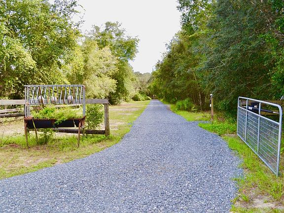 Enjoy the serenity of this 3/2/1.5 private mini farm nestled on 3.56 acres and dotted with grand daddy oaks. This mini farm that was cleverly planned out for the horse enthusiast featuring blue stone chip long drive to main gate, several gates to enter each paddock and pasture easily, board & wire fencing, and a 2 stall shed row barn (with padding) and oversized feed or tack room with ventilation--Stalls can open as run off to pastures. Well maintained concrete block home with split bedroom plan, 2yr old A/C, & generator. Lake across the street! Get it before its gone!