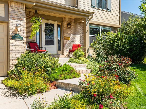 Welcome to this beautiful updated home in the highly sought after Heather Hills neighborhood. Step off the front porch into this 5 bedrooms and 4 bath with refinished hard wood floors, updated kitchen cabinets, new carpet and fresh paint through out the house. Open concept kitchen with granite counters, stainless steel appliances, island and eating area. Family room with vaulted ceilings, tons of windows, built in bookshelves. Main floor also features a bedroom or office with crown molding and a 3/4 bathroom. Go upstairs to an oversized master bedroom and master bath, laundry room and 3 additional bedrooms and full bath. Partially finished basement with new carpet in great room along with a thermostatically controlled fireplace and a full bathroom. This room can be used as a game room or guest room. Ample storage in basement and a wood shop. Walk outside to the backyard with a beautiful deck, hot tub and luscious landscape with plenty of privacy trees. Seller has planted 20 rose bushes and Colorado native flowers that were cultivated to attract butterflies and hummingbirds over the past 20 years. Short walk to Dad Clark Park, beautiful mountain views, top-rated Douglas County Schools. Low HOA gets 4 rec centers, pools, tennis, fitness. Miles of trails! Shopping & Restaurants nearby. Easy to C470, Light Rail.