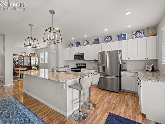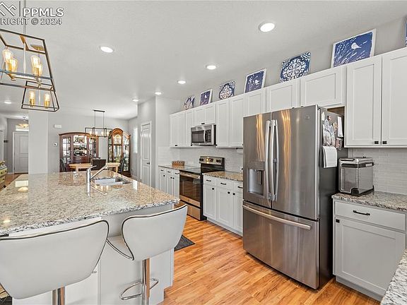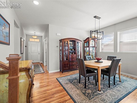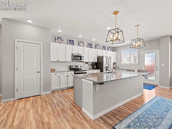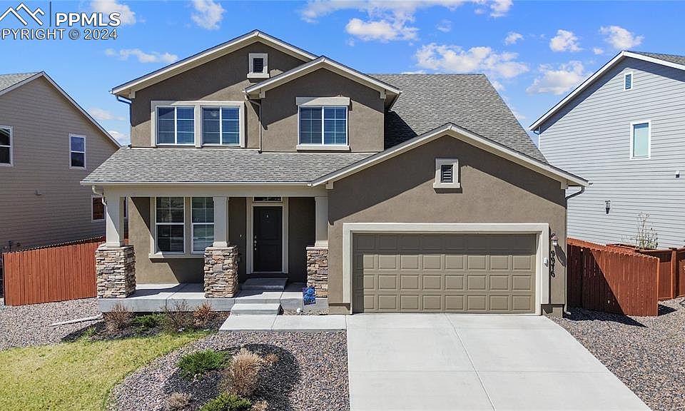 Experience superior craftsmanship in this impeccably designed two-story residence crafted by David Weekley in 2019. Revel in the contemporary elegance of the expansive main level boasting a spacious primary suite complete with a luxurious 5-piece bath featuring a generously sized soaking tub, walk-in closet, and a sleek quartz double vanity. Entertain with ease in the sprawling open floor plan encompassing a sizable living room adorned with a cozy corner gas fireplace, a gourmet kitchen equipped with stainless steel appliances and a substantial island-breakfast bar, and an elegant dining area. Additionally, the main level offers a secluded study/office for added convenience. Ascend to the second level where two ample bedrooms, a full bath, and a versatile loft await. The unfinished full basement presents an opportunity for future expansion to suit your evolving needs. Step outside to the oversized fully fenced backyard, enhanced with a newly installed concrete patio, providing an ideal setting for outdoor gatherings. Nestled within the 2,600-acre Meridian Ranch community in Colorado Springs, this home offers a harmonious blend of serenity and convenience. Embrace an active lifestyle with access to the award-winning Antler Creek Golf Course, a 42,000-square-foot recreation center, indoor and outdoor pools, parks, and trails. Conveniently located within the highly-respected Falcon School District 49, Meridian Ranch also offers its own elementary and high schools. With proximity to essential amenities, including shopping centers, dining options, and military bases, this community simplifies daily life, allowing you to focus on what truly matters. Discover a diverse selection of high-quality homes tailored to your preferences within the Meridian Ranch community. Whether you prefer modern elegance or rustic charm, there's a home style to suit every taste. Immerse yourself in the breathtaking natural beauty of Colorado, where every day feels like a retreat.