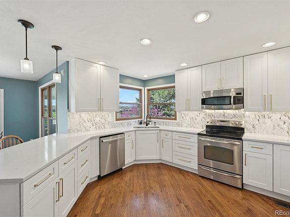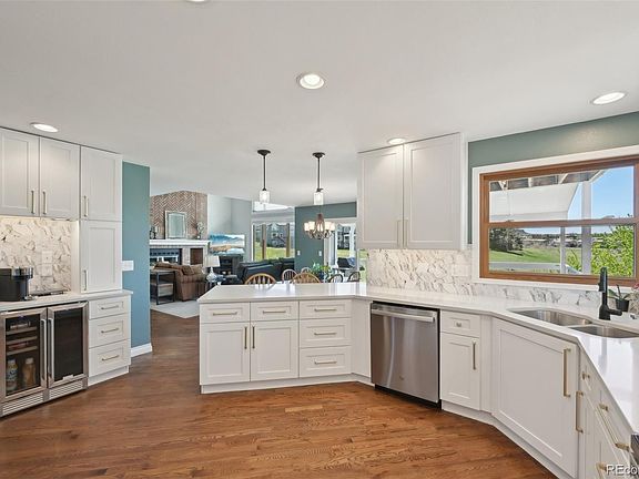 Refined living awaits in this spacious and updated home - backing to open space with mountain views and a finished walk-out basement! Traditional elegance is beautifully reimagined with modern touches. The remodeled kitchen is a stylish blend of form and function, designed to impress and built to perform. Gleaming quartz countertops are perfectly complemented by modern cabinetry and stainless steel appliances. A dedicated coffee bar adds both charm and convenience—ideal for starting your mornings with ease or entertaining guests in style. Step onto the deck and be instantly captivated by the panorama of open space and mountain views. It’s the perfect setting for morning coffee, evening wine, or simply soaking in the peaceful scenery that makes Colorado living so special. The vaulted family room offers a place to gather with family and friends with picture window views of the open space beyond. A main level bedroom with full bathroom nearby is convenient for family or guests. Four bedrooms upstairs, including the primary suite boasting mountain views and awe-inspiring sunsets from your private balcony. The beautifully remodeled master bathroom hosts a sleek standalone tub, surrounded by elegant finishes and thoughtful details. Spacious walk-in shower, modern fixtures, and custom cabinetry complete the spa-like feel. You'll find two generous walk-in closets, offering abundant storage and a true sense of personal space. The finished basement with expansive rec room provides flexibility for your specific needs - game room, media area, home office space and a separate enclosed exercise room. Enter from the 3 car garage into the large laundry room with additional storage. This home is situated on a generous lot featuring serene and comfortable outdoor living spaces. New exterior paint enriches the curb appeal. Located near the neighborhood schools, Southridge rec center, Park Meadows Mall and everything Highlands Ranch has to offer!