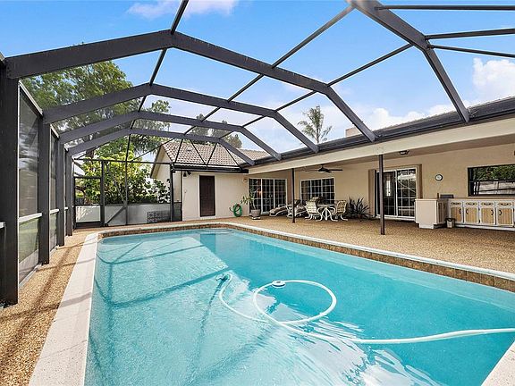 Situated in sought-after area of Maplewood, this well-maintained home welcomes you. Fantastic curb appeal. Lush landscaping provides the perfect aesthetic with pineapple, banana, mango and avocado trees. A totally renovated kitchen/silgranit sink and breakfast area open to the family room with fireplace all overlooking the screened pool. Large Bedrooms. Hurricane protection with impact windows, 2 in the front and 1 on the east side, as well as 1 accordion and panels. The residence also boasts a 2018 AC, a 2020 WH, new electric panels 2019, 2025 garage door opener, knockdown ceilings & no carpet! The pool pump is equipped with variable speeds for low electric bills. Circular drive and automatic sprinklers. This property is situated close to top schools, parks, shopping, and major highways.
