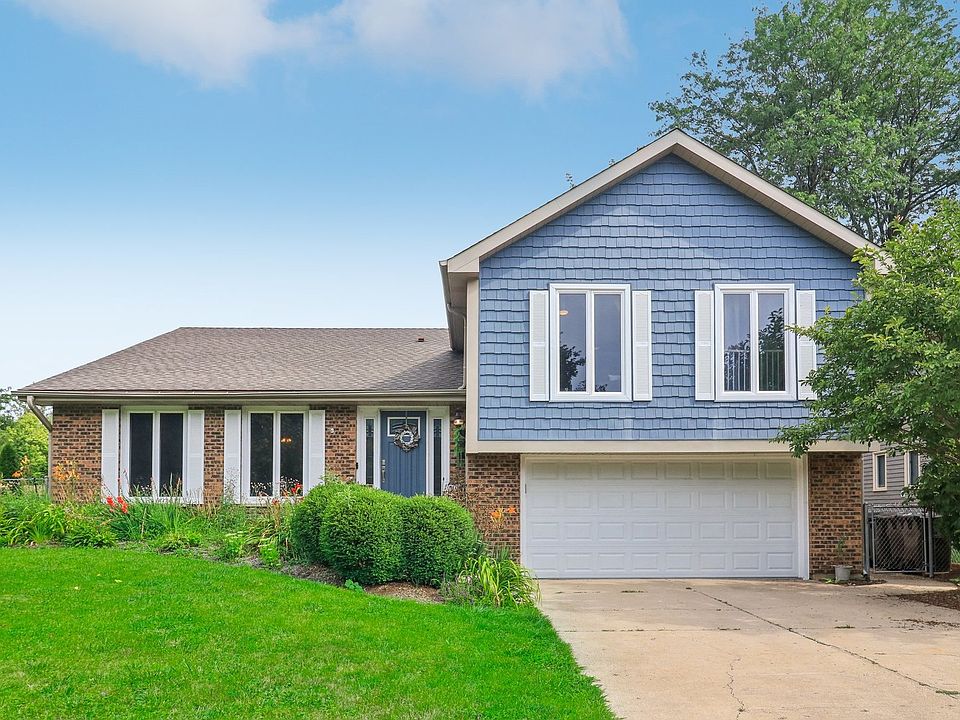 Updated & stylish split-level home featuring 4 bedrooms, 2.5 baths, & a versatile floor plan that offers flexibility for your lifestyle. Main floor boasts stunning Brazilian cherry hardwood floors & vaulted ceilings that enhance the sense of space & light. Galley kitchen comes equipped w/ all stainless steel appliances. Family room is a cozy retreat w/ a stone wood-burning fireplace. New glass sliders lead to the fully fenced backyard, complete w/ a patio, fire pit, shed, & swing set. Primary bedroom is generously sized, featuring a private full bath & walk-in closet. A major highlight of the home is the custom-built bar in the English basement, perfect for hosting gatherings. Extra deep 2-car attached garage for your convenience & storage needs. **KEY UPDATES: A/C ('22), Garage door & exterior siding, & 2nd floor hardwood & carpet installed ('21), all kitchen appliances (except microwave) replaced, & water heater ('20), & Washer & Dryer ('18).**