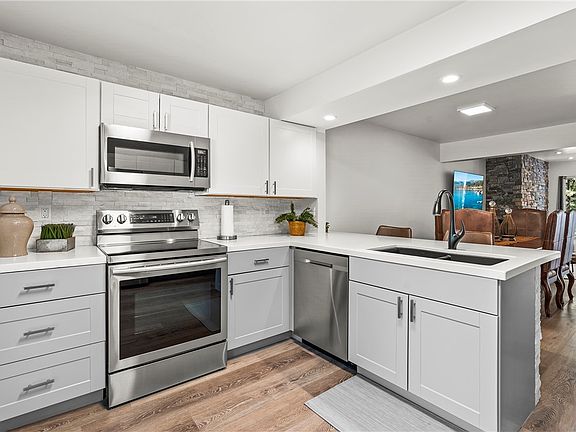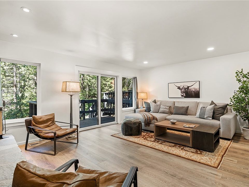 Tranquil creekside setting! A great location in the Championship Golf Course subdivision, this 2 bedroom and 2 bath, two story condo feautures a wall of windows in the living room that captures the relaxing sounds of nearby "Third Creek". Beautifully remodeled from top to bottom in a modern contenporary design. The kitchen features (nearly) new cabinets, counters, stainless appliances and sliding glass door to onto the BBQ deck. Both bathrooms boast modern vanities and beautiful tile. Popular luxury vinyl flooring and beautiful tile work throughout. Larger second deck off the living room allows for wonderful outdoor living and stairs allow access the creek. Pine Creek is a small complex of only 12 units. There is ample covenient parking right in front of your door. New furnace in October 2022.