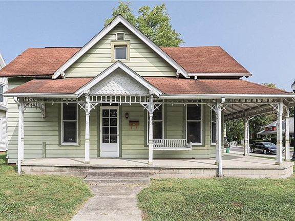 Historic GOTHIC REVIVAL is a variation of the Victorian style featuring asymmetrical floor plans! Built in the mid-late 1800's on a brick basement, with ARCHITECTURAL DETAILS remaining unchanged - ELABORATE FRETWORK enhances the wrap around porch. Nice city lot on a highly visible corner/room to reconstruct a carriage house. Three bedrooms, one bath, original woodwork & cabinetry, fireplace, transom windows, hardwood floors, 9-foot ceilings and an unfinished attic. Looking to restore a classic? THIS IS IT!