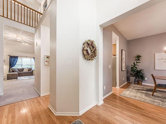 This stunning 4 bedroom, 2.5 bath home is one of the largest in Chesapeake Farms! The open floor plan features 2 story ceilings throughout the living room as well as a custom stone fireplace and mantle. The kitchen includes an eat-in area and has updated granite countertops, sink and backsplash. The separate dining room is perfect for entertaining and offers tons of natural light. The first floor primary suite has an updated ensuite bath and walk-in closet. Upstairs you will find 3 huge bedrooms and another full bath. The finished basement space includes a wet bar, custom woodwork and a retractable screen for movie watching. Outside is a dreamy private yard with mature landscaping and a huge deck, perfect for parties. Other updates include floors, a/c, h2o tank, roof, decking and lighting.
