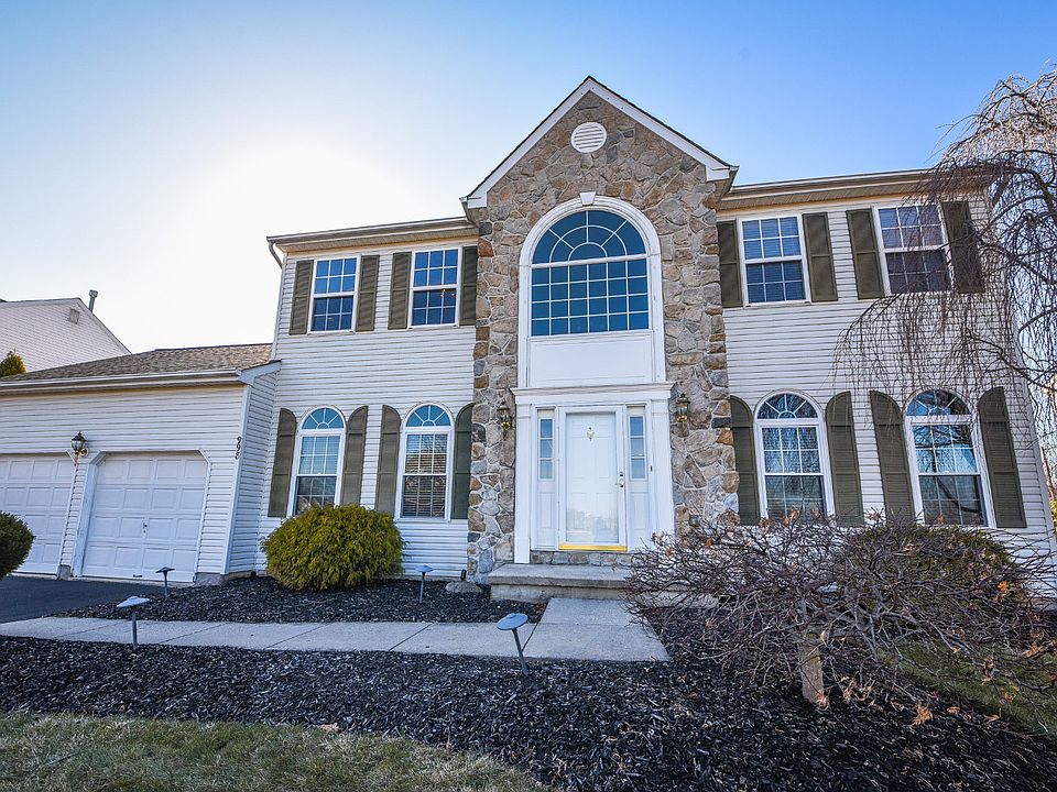 This gorgeous 4 bedroom, 3 and a half bathroom colonial home is a definite must see! Located just minutes from major routes and shopping, and is full of modern upgrades that are sure to impress. Welcoming you into the home is a two-story foyer with split staircase that are bathed in natural light from a dramatic Palladian window. The formal dining room is highlighted with crown molding and chair rail, and the beautiful kitchen is sure to impress with tile flooring, granite countertops, 42" cabinetry and a breakfast nook. Enjoy cooking large meals for family or guests with the 5-burner gas stovetop and modern stainless steel appliances. Relax in the spacious living room with wall to wall carpeting, or in the family room by the gas fireplace. The upstairs of the home features four large bedrooms with ceiling fans, and the luxurious master suite offers a number of desirable accents such as vaulted ceiling, a dual vanity, soaking tub, and stall shower. As if that were not enough, the home boasts an expansive finished basement with recessed lighting and a granite wet bar ideal for entertaining. Stepping outside, the elaborate paver patio is the perfect place for summer barbecues or to simply enjoy the beauty of the landscaped back yard. The home additionally features a play room, attached 2-car garage, newer carpeting in the living room and dining room, and a newer roof and windows.