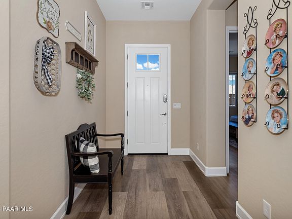 Your almost new home with unparalleled golf course and mountain views awaits! This gently lived in home has many improvements like solid surface flooring throughout; pull out shelves in the kitchen; whole house exhaust fan; raised seating area overlooking the golf course; motorized shade/privacy screen on the back patio; and tons of cabinets added to the laundry room!You will appreciate the extra 3 feet of width in the garage for storage or your work bench. They also added a bump out in the primary suite giving you a seating area to enjoy the endless views. Upgraded primary suite bathroom has a ceiling heater.A true turn key home that is ready for its new owners. Check out all the improvements under the documents tab.The best community amenities - see the pictures!