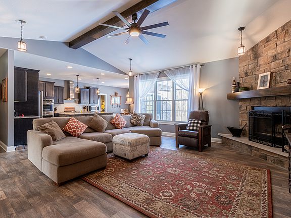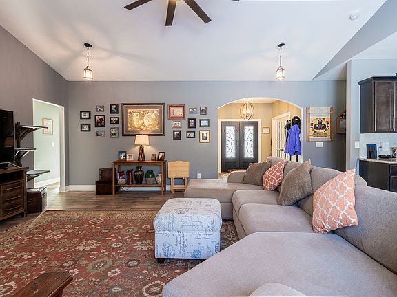 Discover the perfect blend of rural charm and contemporary comfort in this meticulously maintained custom-built ranch-style home on 5 wooded acres. The all-brick and stone residence features 3 bedrooms, 2.5 baths, a 3-car garage, and a private gated drive. Upon entering through ornate iron front doors, a foyer leads to an office and a versatile bonus room. The spacious great room impresses with vaulted ceilings, updated fixtures, and a natural stone wood-burning fireplace. The gourmet kitchen boasts granite counters, stainless appliances, double oven, propane cooktop with vented hood and a spacious pantry. Large windows and sliding patio doors offer spectacular views of wildlife from the dining area. The owner's bedroom has an ensuite bath with a double vanity sink, tiled shower, garden tub and large closet with built-in shelves. Split floor plan ensures privacy with a separate bedroom area and full bath. Cleared woods provide stunning wildlife views, and a refurbished shed with a metal roof adds charm. Ideally located for Crane, Bedford, or Bloomington commuters. Starlink high speed internet available!