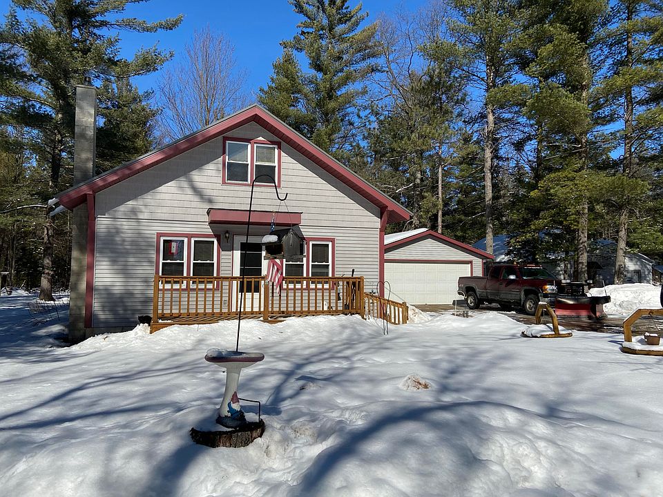 Bordering national forest! Cute and cozy 3 bedroom chalet style cottage/home with that up north feel. Features include 1-1/2 baths, laminate and carpet floors, knotty pine and drywall interior along with wood and electric heat. Enclosed porch with many windows to view the wildlife, maintenance free exterior with vinyl siding and metal roof. 2 car garage for the toys, etc....sit around the fire pit in your back yard, ride your snowmobiles and atv's from here. Located 2 miles west of Mio. Priced at $84,900. MLS# 323164