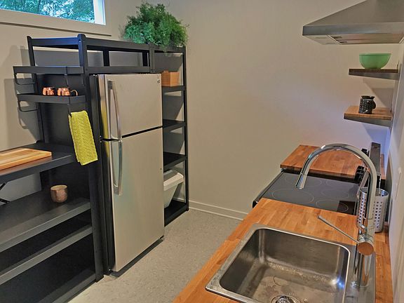 **Accepting Applications until Noon Friday 30th** No more showings are available. We plan to decide on an applicant and notify them this weekend. : : : : : : : : : : : : : : : : : : : : : : : : : : : : : : : : : : : : : : : : : : : : : : : : : New & Modern Tiny House for rent near the intersection of Cooper & Young. It is small at 485 sq ft. This is a private guest house off of the main property with its own driveway (space for one car). A spiral staircase leads to the 12' x 12' loft style bedroom above the living area. Full kitchen and bath, washer/dryer in unit. Large wardrobe for storage/closet. Lots of shelves in the kitchen. Very private, no yard, but there is a cement patio with plenty of room for a grill, patio table & chairs. Parking for one car. Just minutes walk to some of the best restaurants and hangouts in Memphis. No utilities included. One-year, 18-mos, or 2-year lease option (nothing shorter than 1 year). First month + deposit due upon signing. Available Sept 1st, possibly as early as August 18th (need to confirm with current tenant) Prefer no pets, but negotiable for very small indoor-only. Applications are processed through Zillow, which will run a background and credit check. Good credit required. No smoking, responsible for own MLGW account, prefer no pets